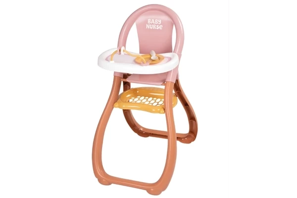 Ist die Puppe hungrig? Dann muss sie natürlich gefüttert werden! Setzen Sie die Puppe in diesen bequemen Stuhl. Das ist dank der großen Öffnung ganz einfach. Das Tablett kann den Teller mit Löffel aufnehmen und es ist ein Geschicklichkeitsspiel angebracht. Die Sitzhöhe beträgt 50 cm und es gibt zusätzlichen Stauraum unter dem Sitz. Geeignet für Puppen bis zu einer Größe von 42 cm. Kinder ab 18 Monaten können damit spielen.